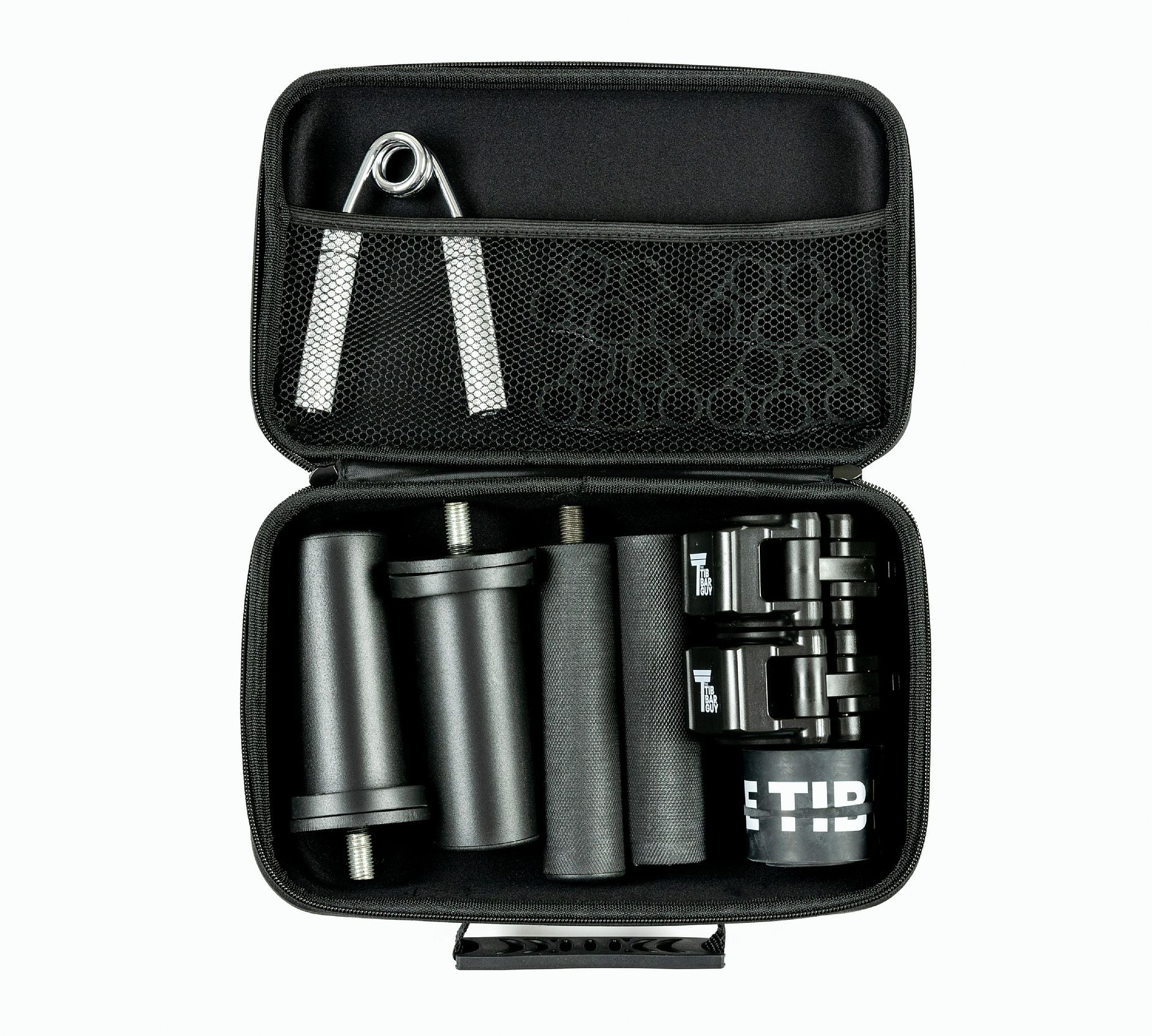 - The Torque Bar Bundle: Includes the Torque Bar, two premium weight clamps, finger extenders, adjustable crush grip, floss band, and a storage/travel case.