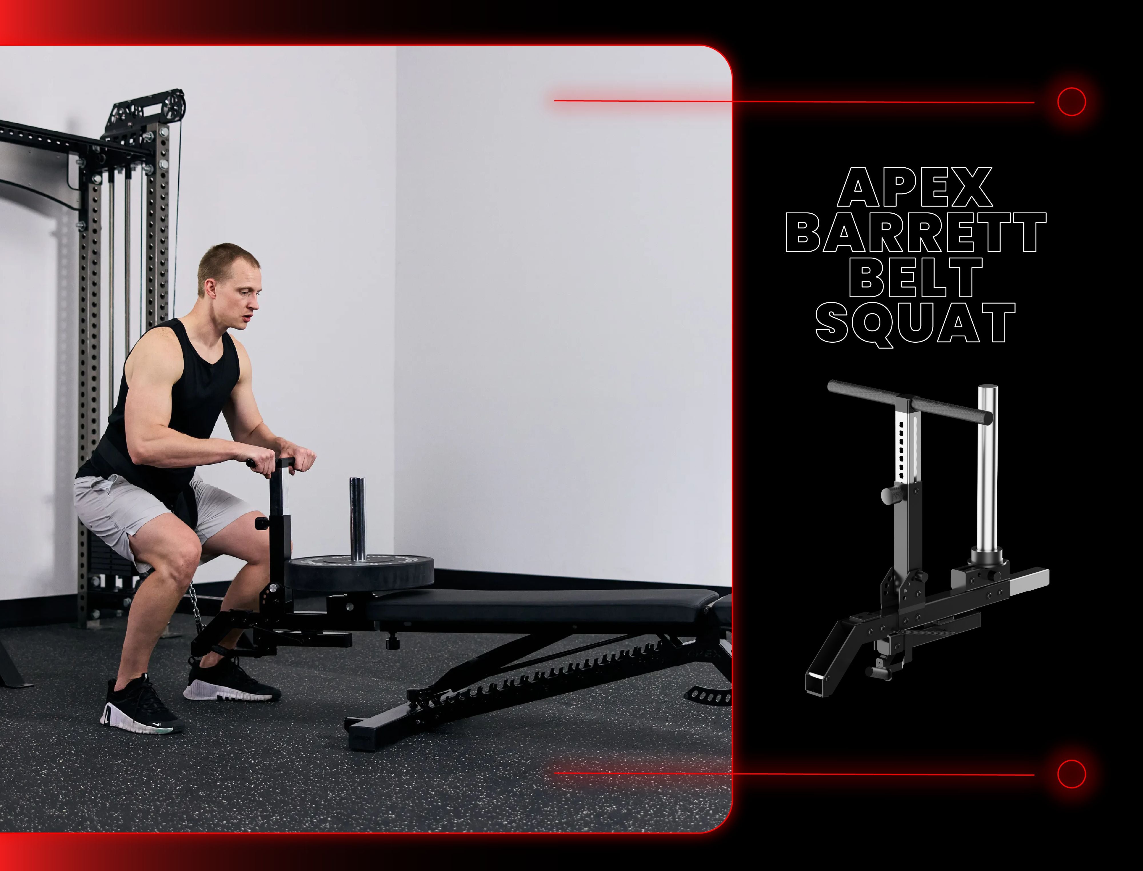 As part of the APEX Ecosystem, the Barrett Belt Squat expands the Adjustable Bench into a powerhouse lower-body attachment. Pair it with attachments like the Hybrid Board, Stryker Pad, and Fusion Machine for an all-in-one training solution.
