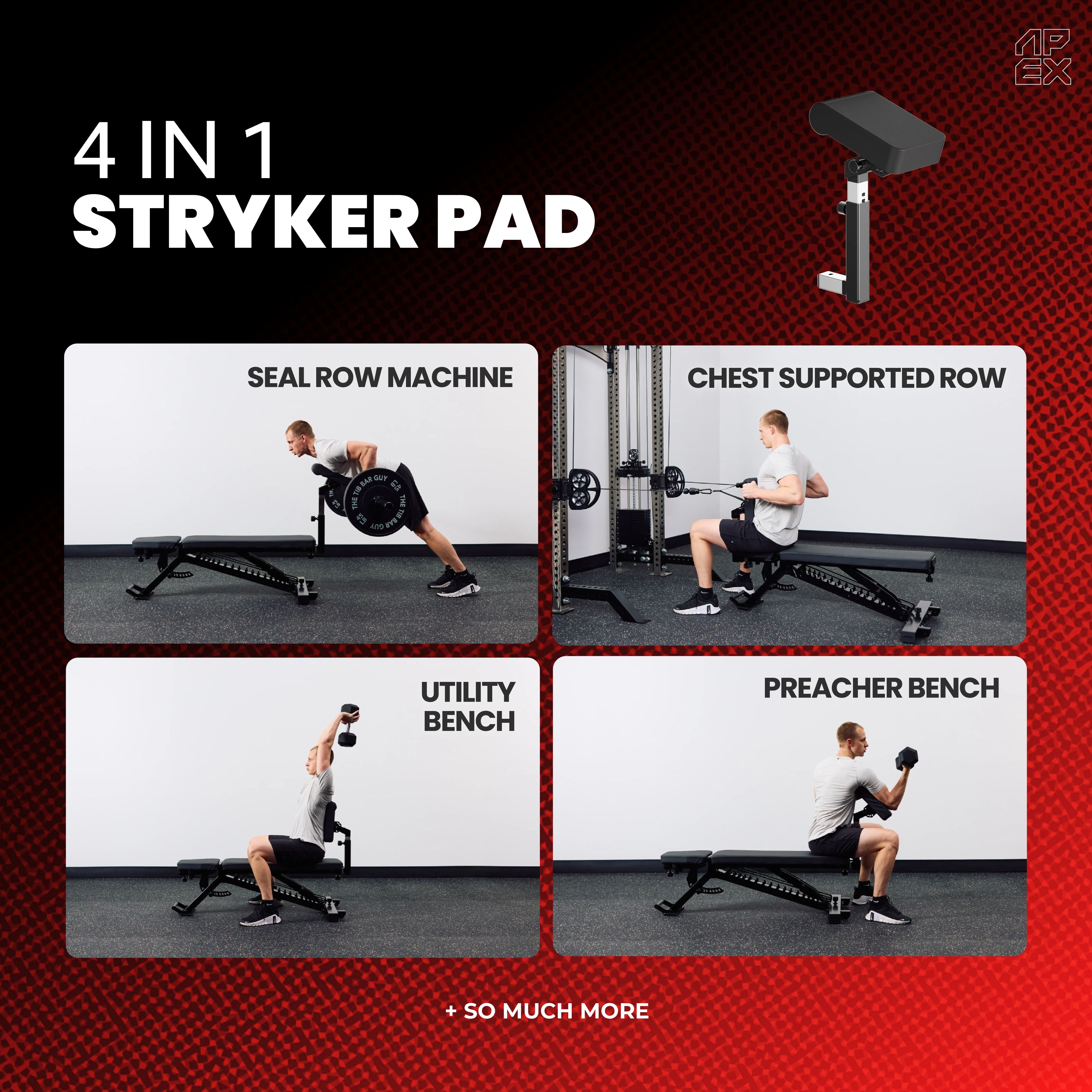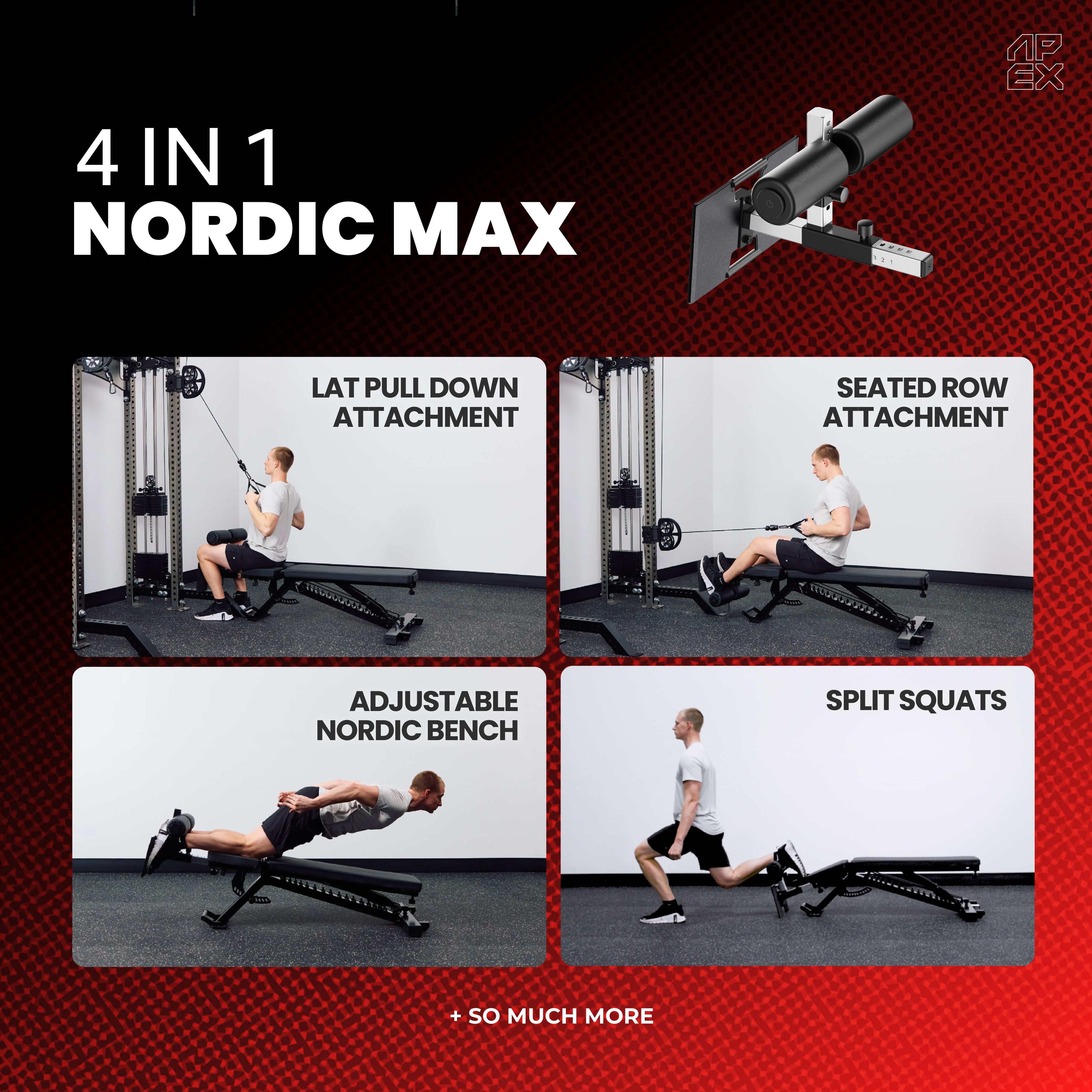 The APEX Ecosystem is a fully integrated training system built around the APEX Adjustable Bench. Every attachment is engineered to connect directly to the bench, transforming it into multiple machines in one. Instead of buying separate bulky equipment, you expand your setup piece by piece with attachments like the Nordic MAX, Stryker Pad, Landmine, Ab Trainer, Leg Extension, Belt Squat, Power Tower, and more.
