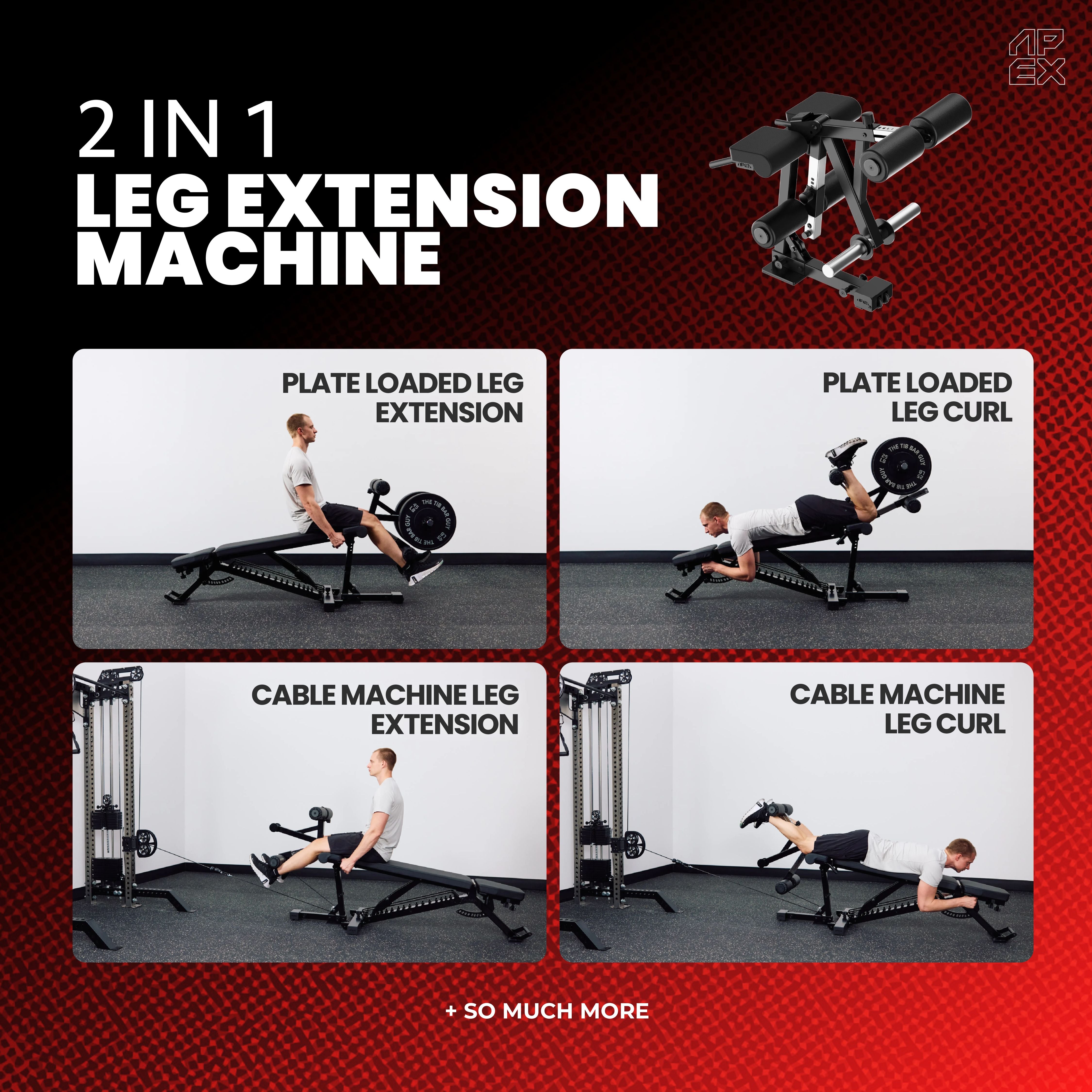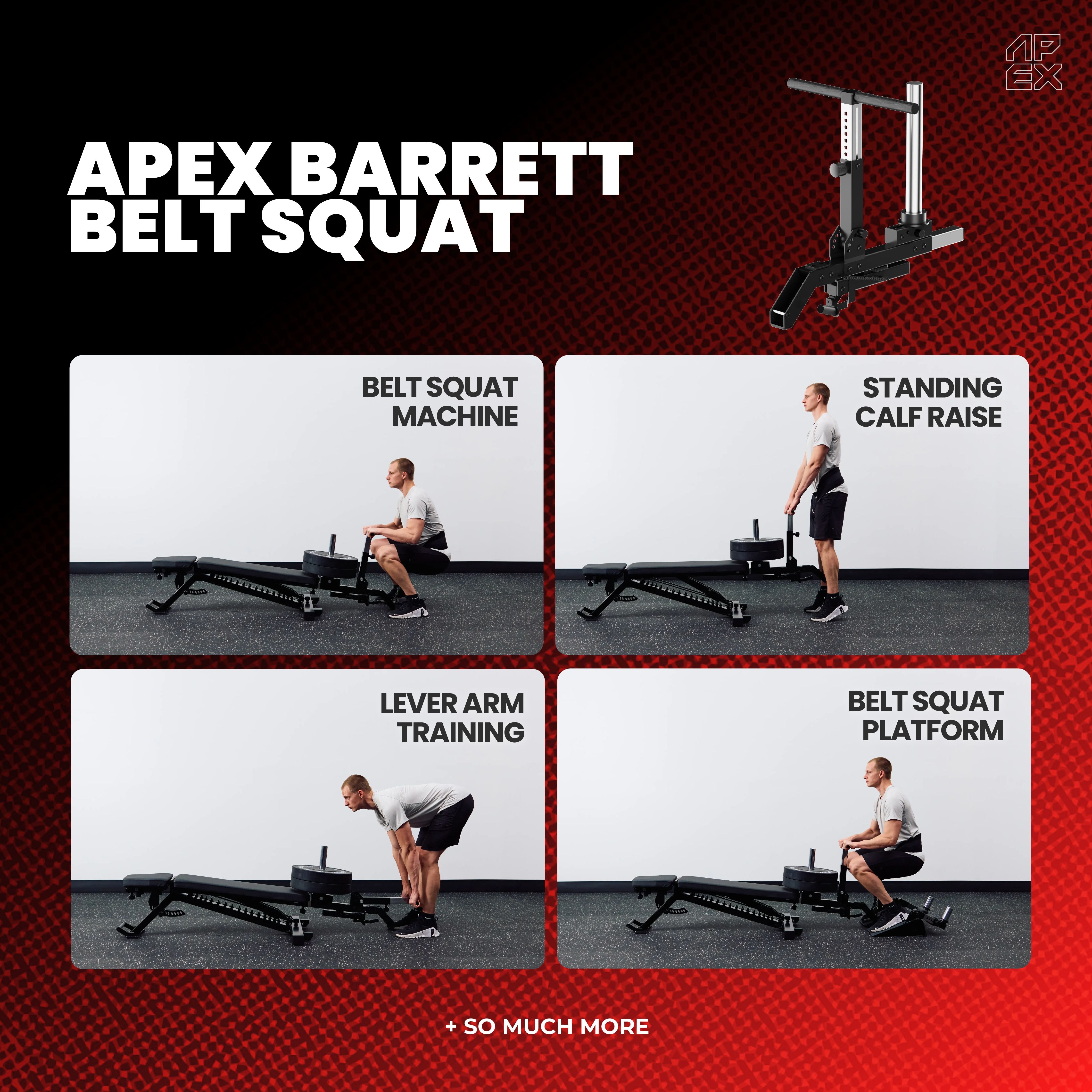 machine uses the full length of the APEX Bench spine to create the longest lever arm of any attachment, delivering smooth, linear motion for belt squats, calf raises, and more.