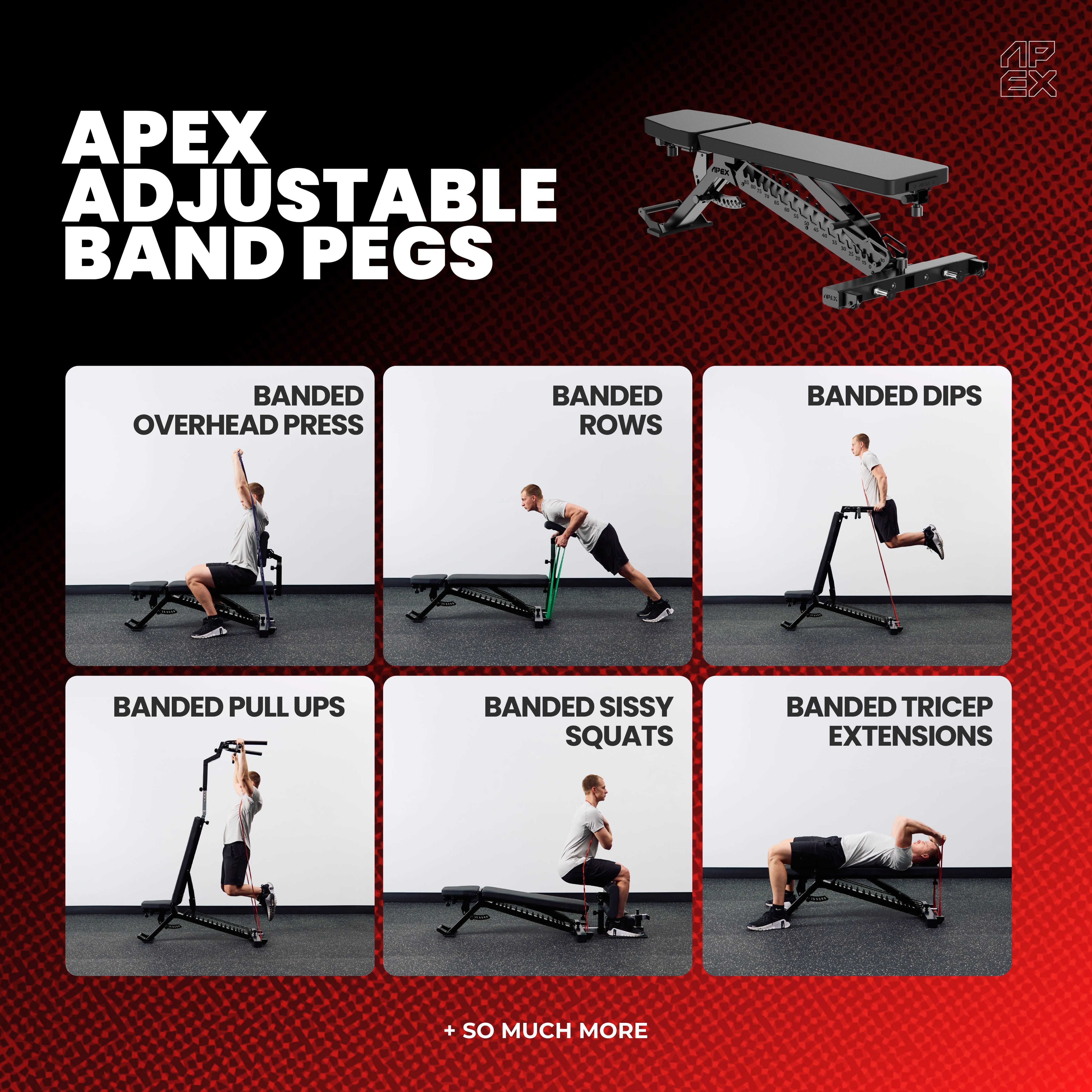 Yes. For added resistance, attach bands to the optional band pegs on the APEX Adjustable Bench. For assistance with pull-ups or dips, loop bands directly over the pull-up bar or dip handles and place your knees or feet inside the band to reduce bodyweight load.