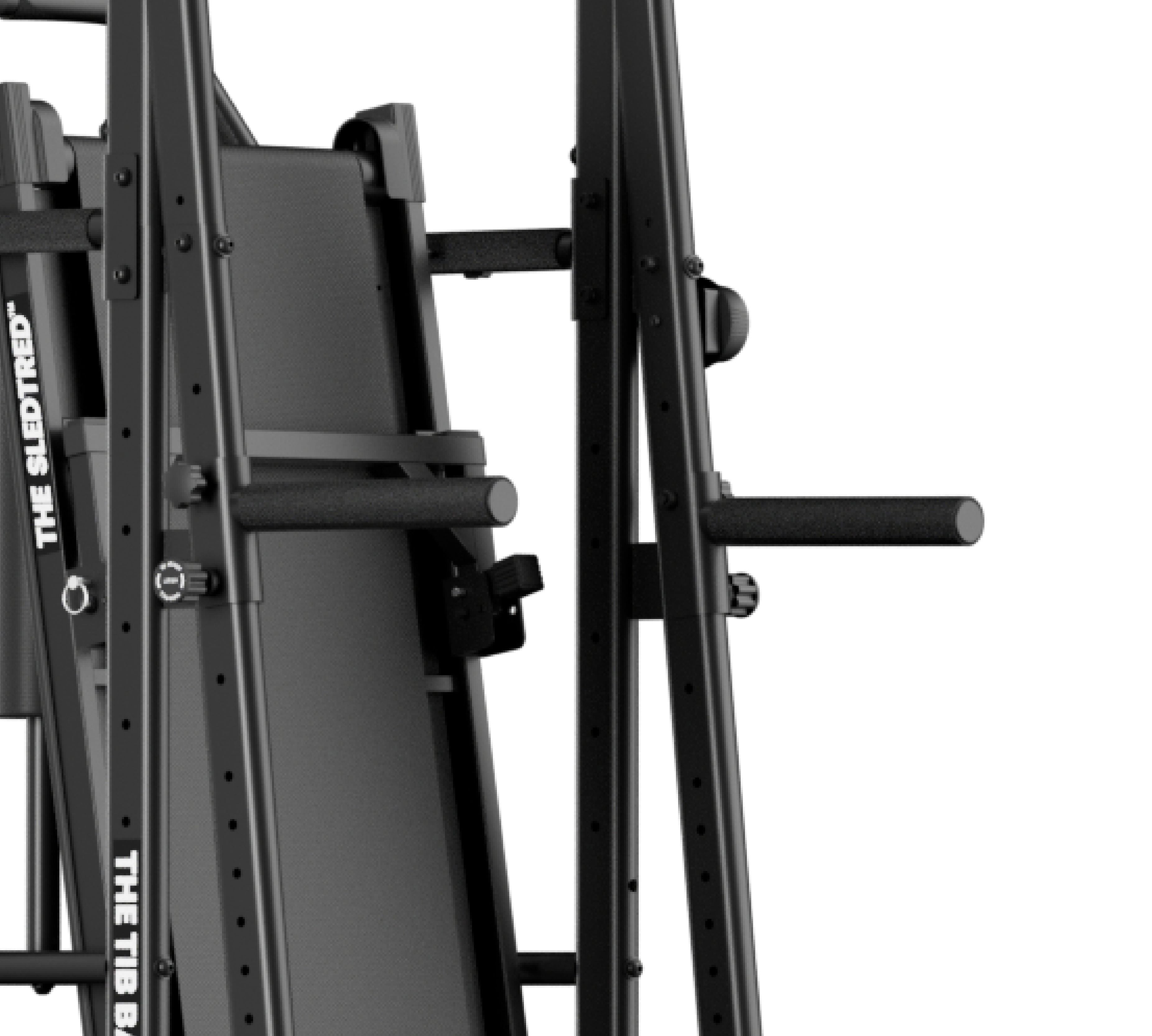 The Power Tower is an optional attachment for The SledTred that transforms it into a full-body training station. It adds a multi-grip pull-up bar which unlocks chin-ups, pull-ups, hanging abdominal exercises and also can be used for band assisted Nordic curls.