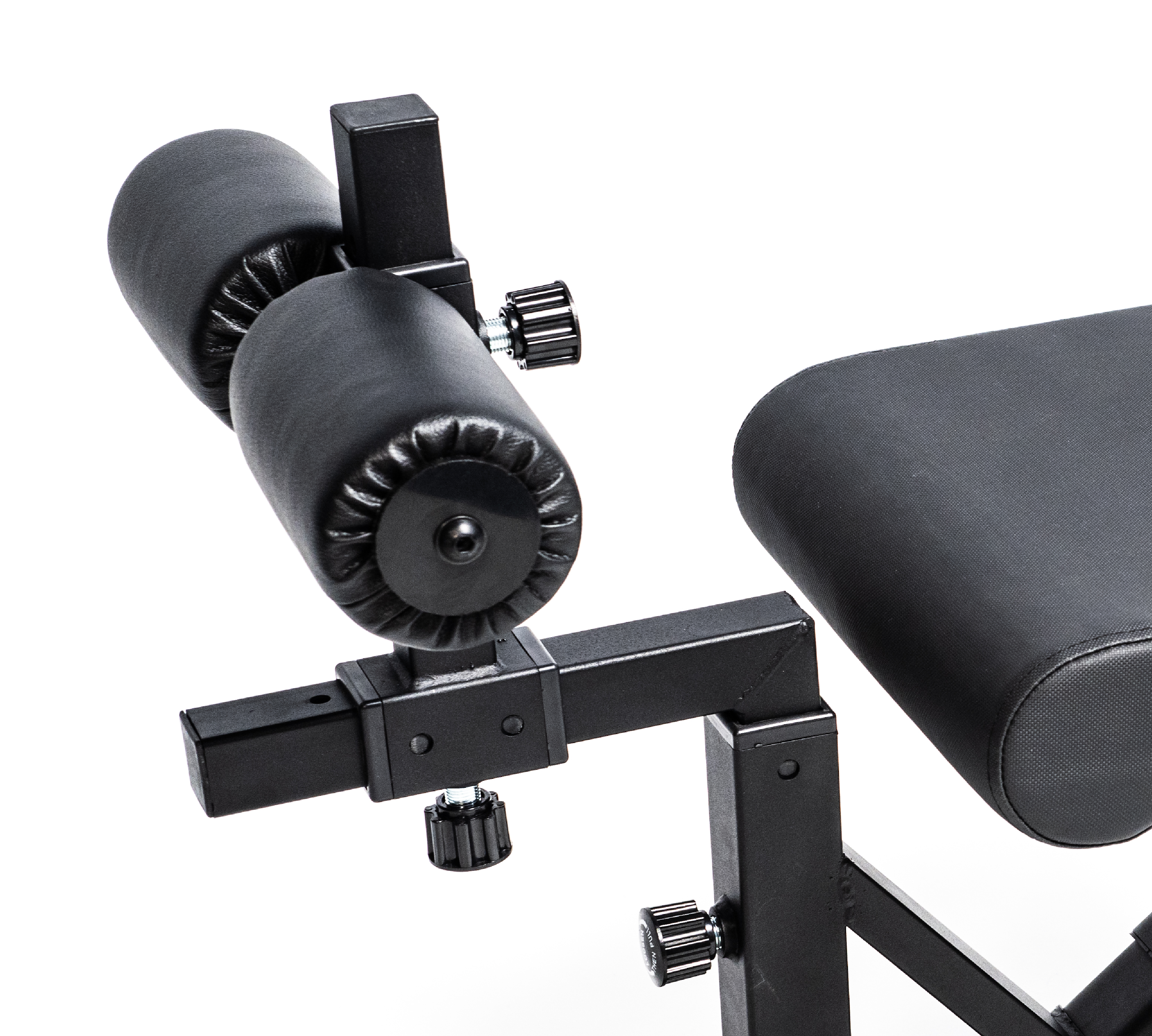 The bench features a secure and adjustable ankle support system, enabling users to perform Nordic curls with proper form and stability.