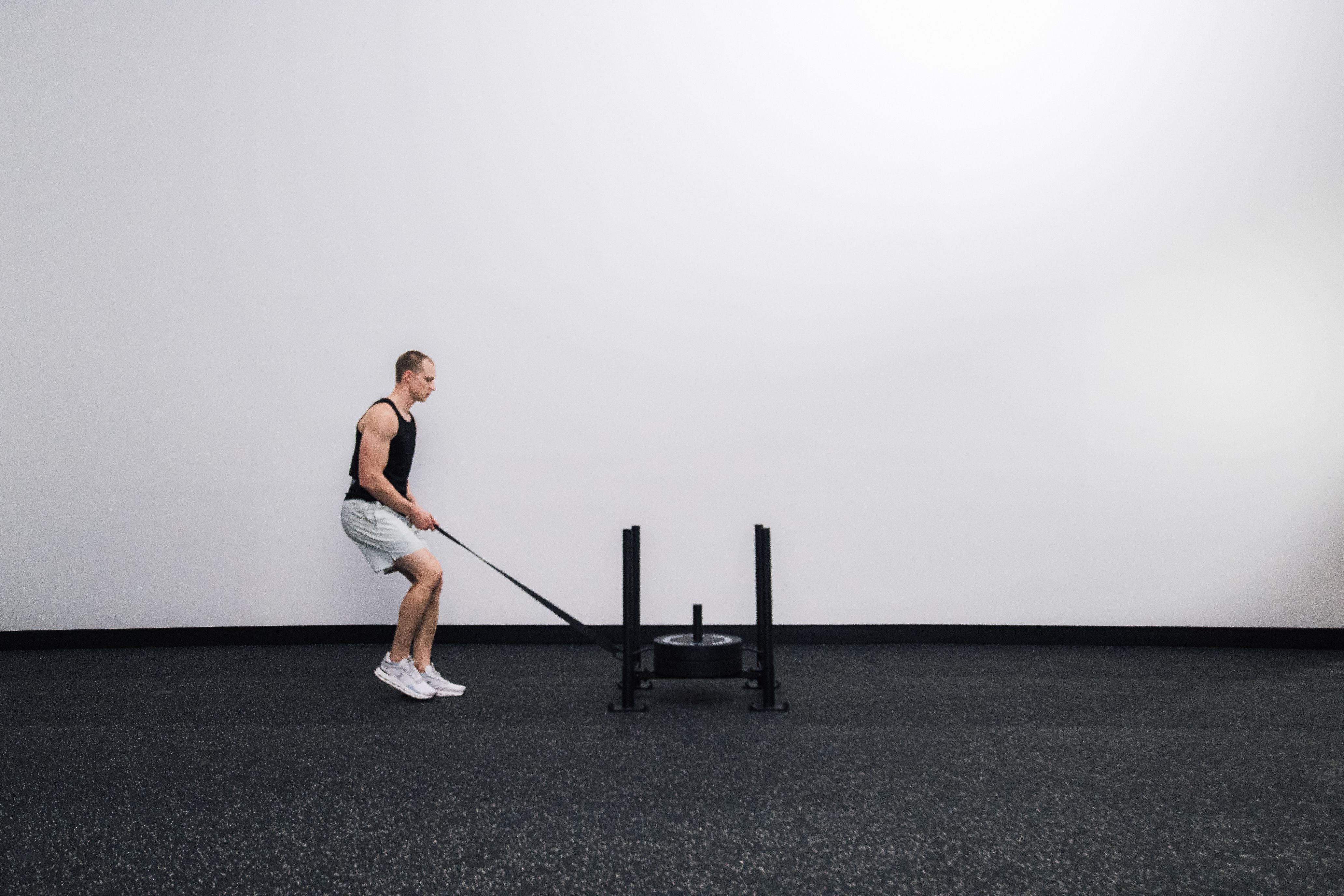 This depends on your goal, but 2-3 sessions per week is a great place to start. Heavy drags fit well into leg days, while upper body pulls and lighter sled work make great finishers after upper body workouts. For conditioning, you can program sled pushes and sprints into dedicated conditioning sessions or even use them as active recovery on off days.