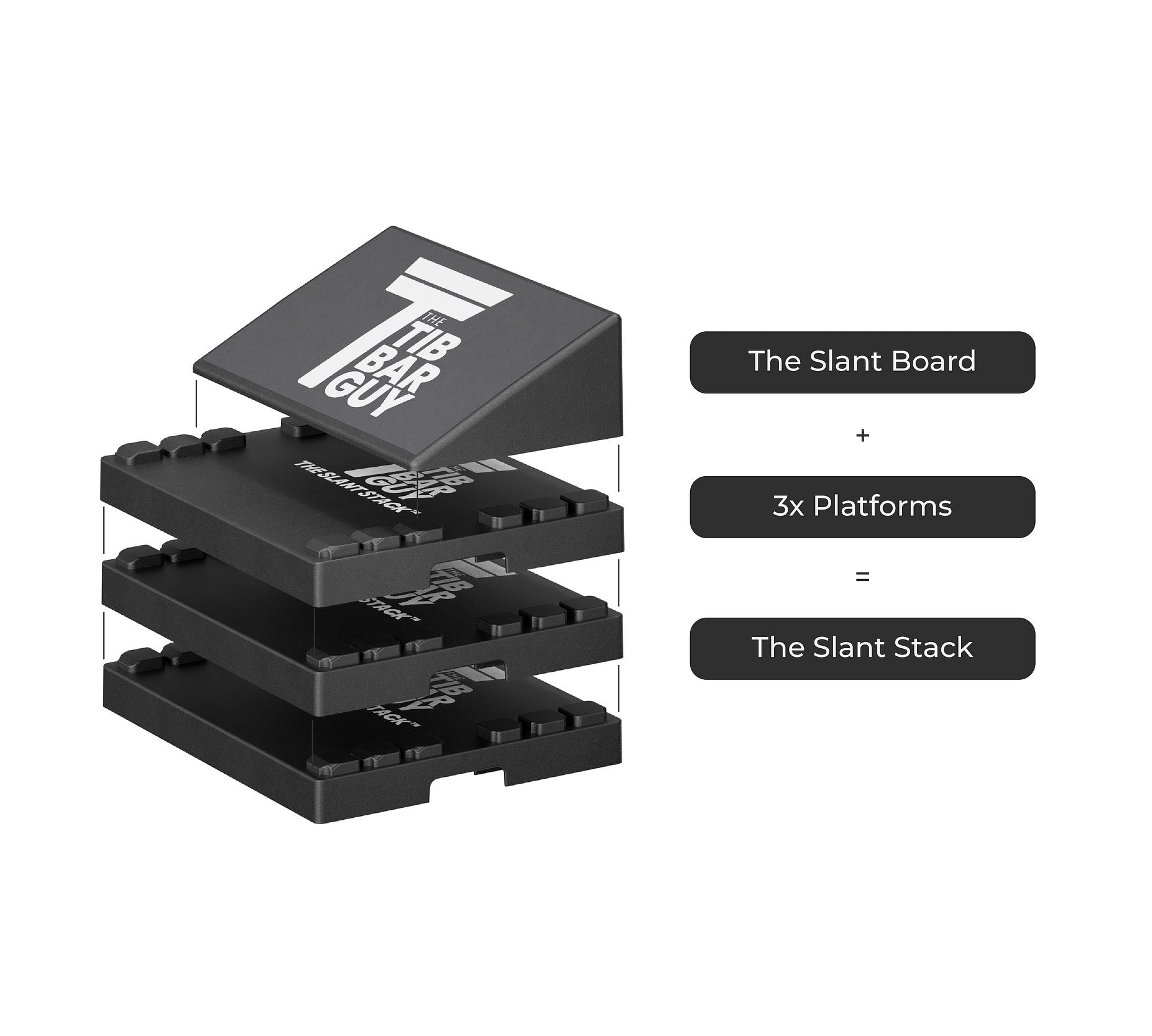 The Slant Board is designed to sit securely on top of The Slant Stack platforms, creating an adjustable and versatile training surface. This combination allows for greater exercise customization and progressive overload.
