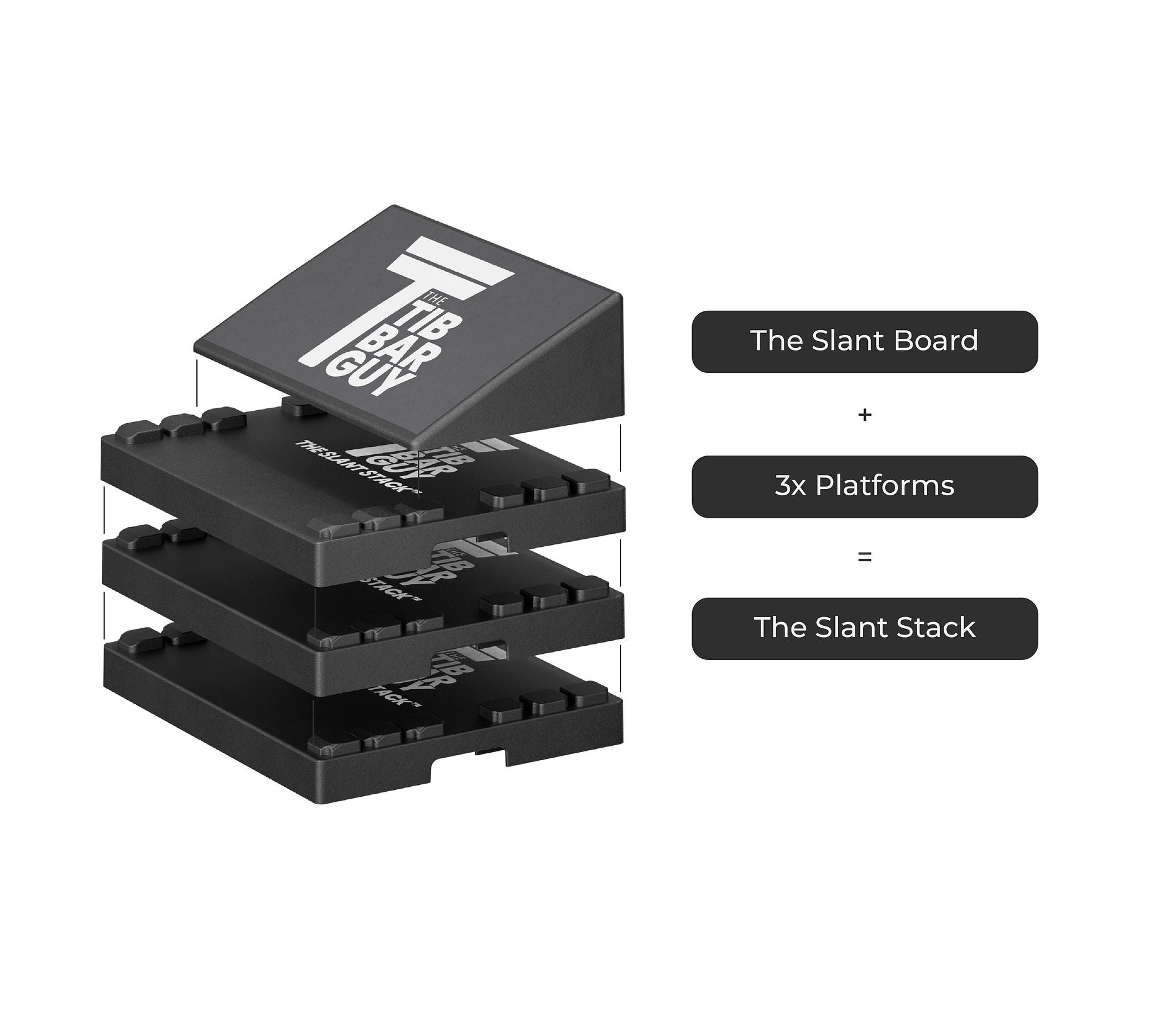 The Slant Stack is a versatile lower-body training tool designed of durable, stackable platforms that allow users to create a safe and stable elevated surface for various lower-body exercises. When combined with The Slant Board, it unlocks even greater exercises to be incorporated into your training, improving your strength, mobility, and injury resilience.