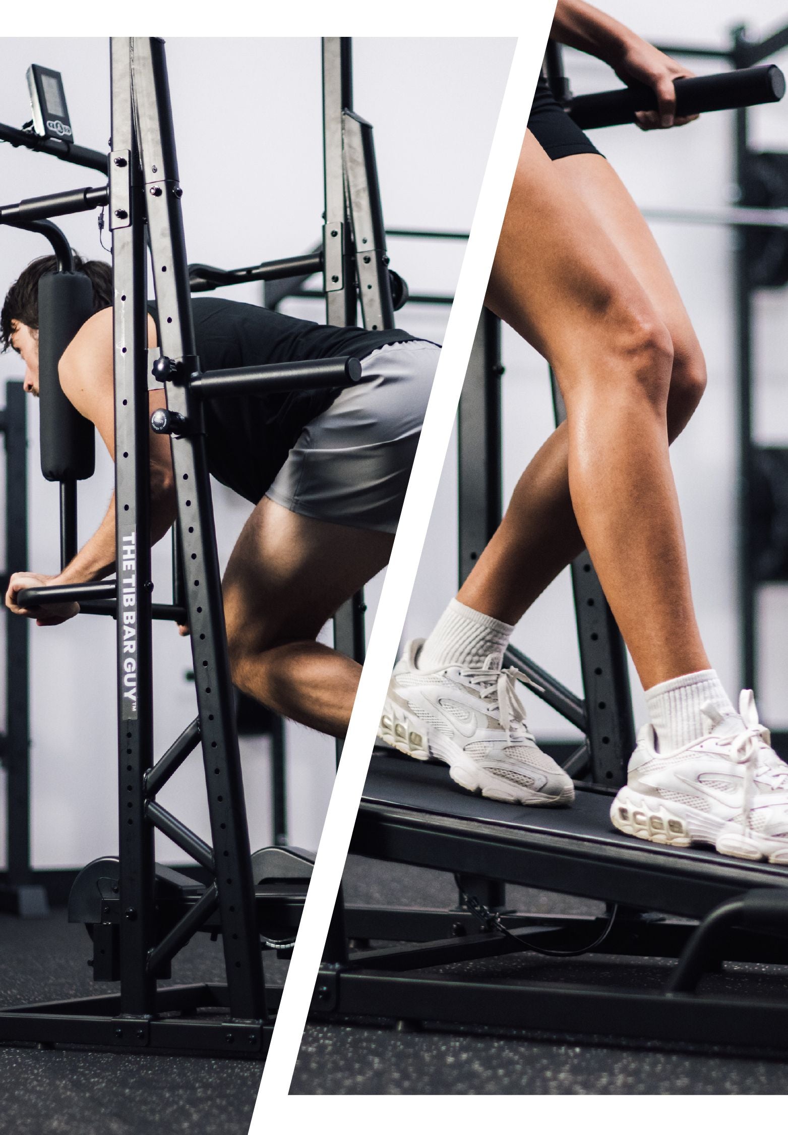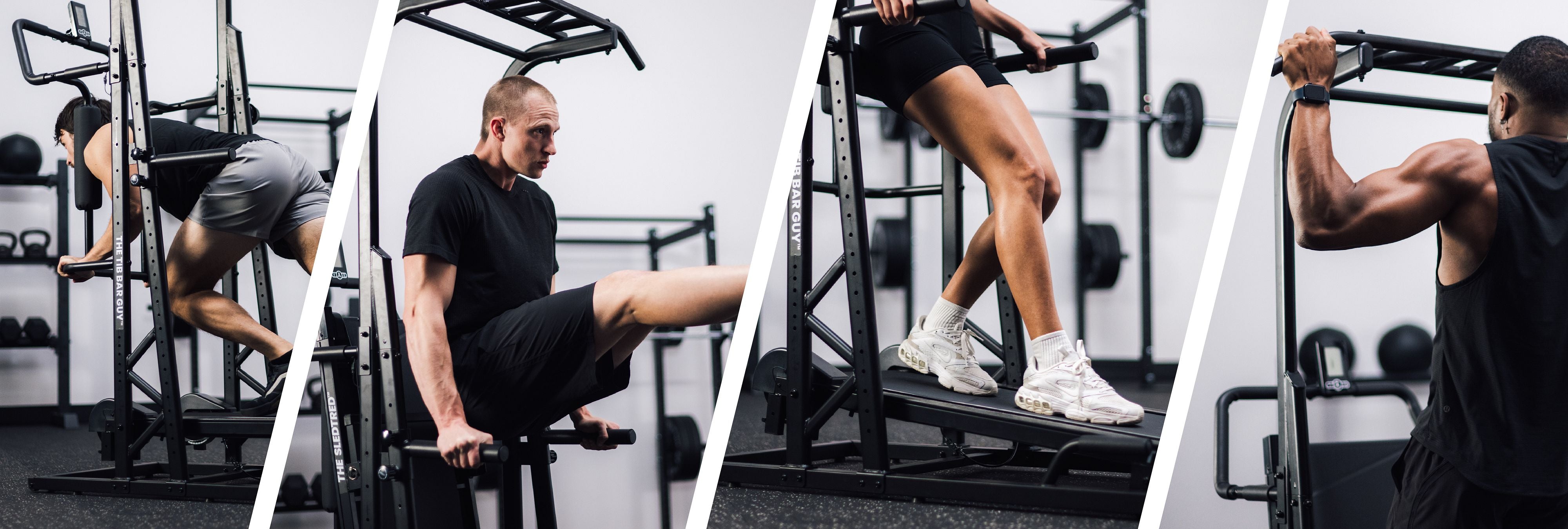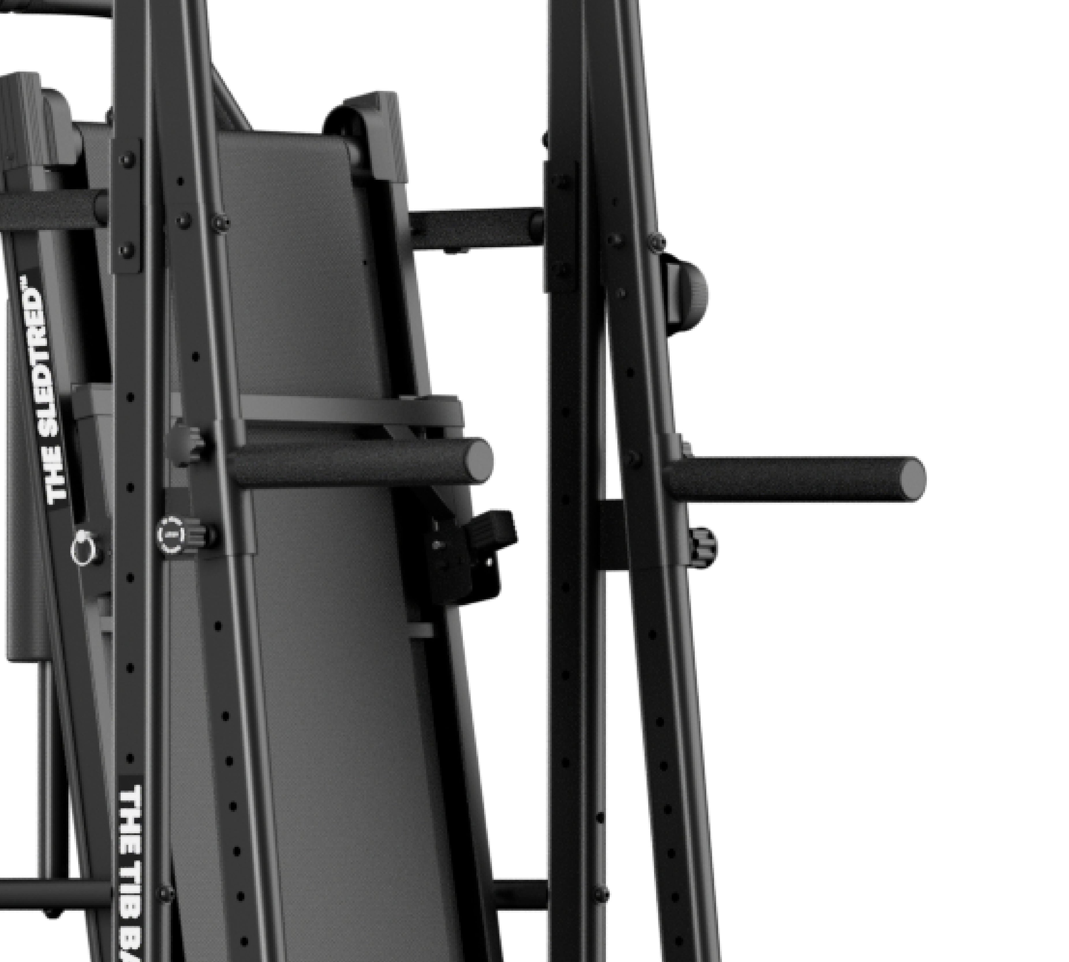 The Multi-Step Attachment, Hip Thrust/Split Squat Roller, and Dip Bars connect to The SledTred™ via our unique and patent-pending double rail system that allows for maximum adjustability to ensure proper positioning and comfort for every user.