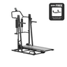 The SledTred is a revolutionary 6-in-1 fitness machine that combines a manual treadmill, resistance sled, hip thrust station, Nordic bench, and sit-up bench, into one compact unit. It’s designed for both lower body strength training and conditioning, with a space-saving design perfect for home gyms plus you can add the optional power tower to increase the versatility.